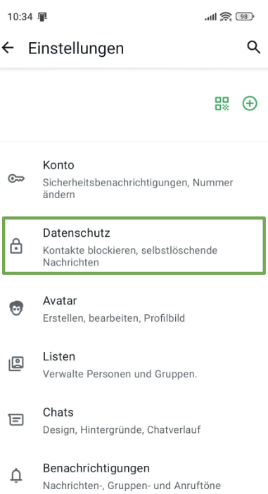 Um zu kontrollieren, wer deine persönlichen Informationen sehen und dich zu Gruppenchats hinzufügen kann, führe die folgenden Schritte durch: