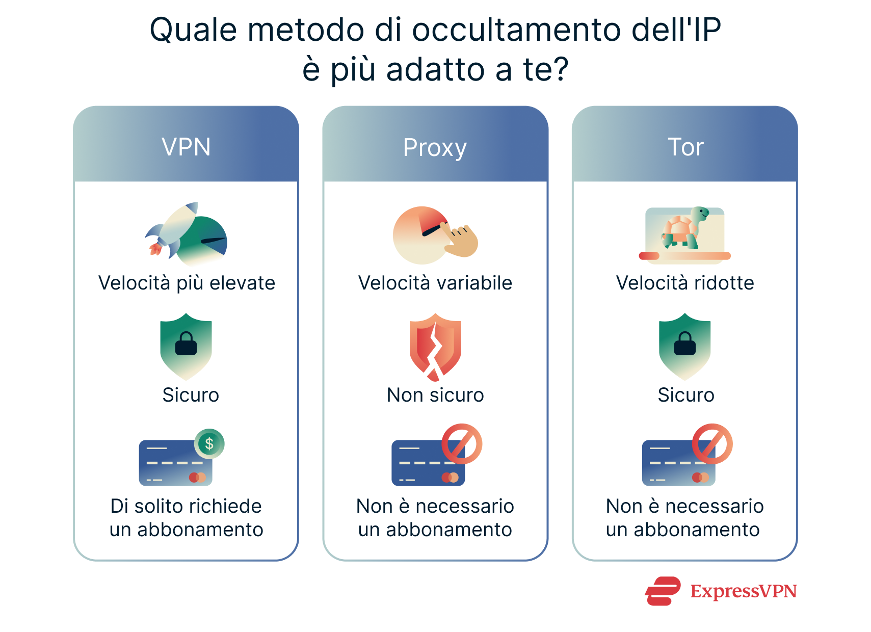 • Quale metodo di occultamento dell'IP è il più adatto?