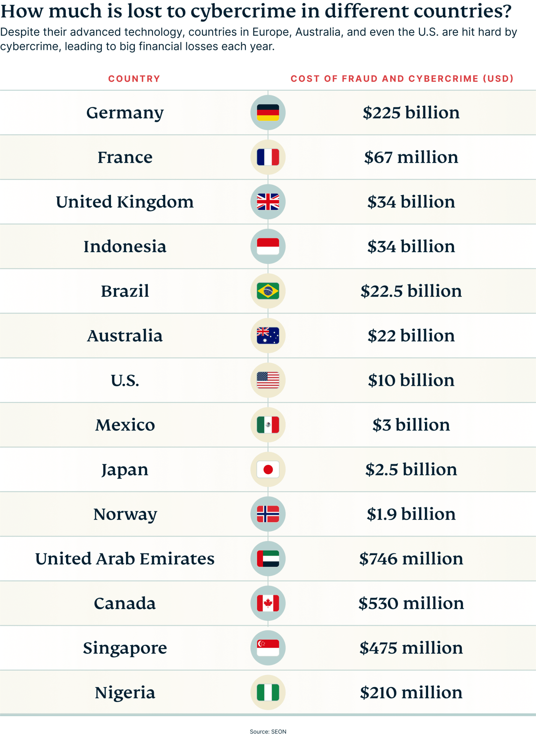 Below, we delve into the losses incurred by these costly crimes in certain countries: