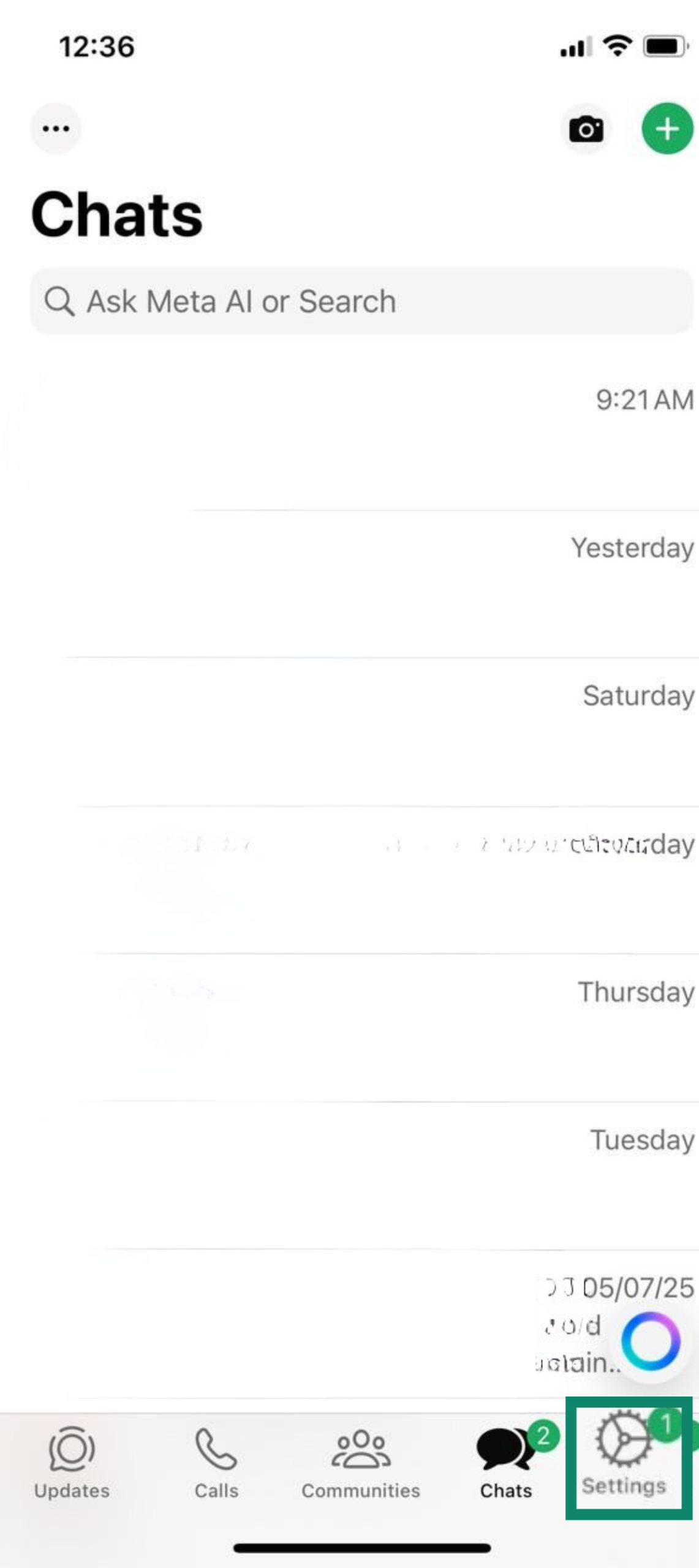 - Open WhatsApp and tap the Settings icon in the bottom right.