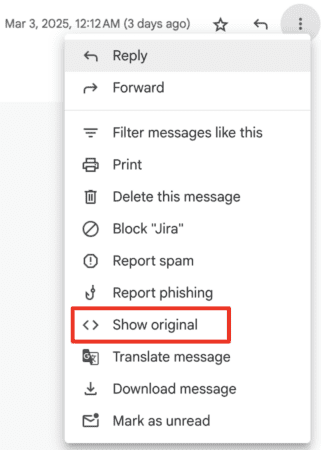 - Open the email, tap on the three dots icon, and select “View Source” or “Show Original” (this varies by provider).