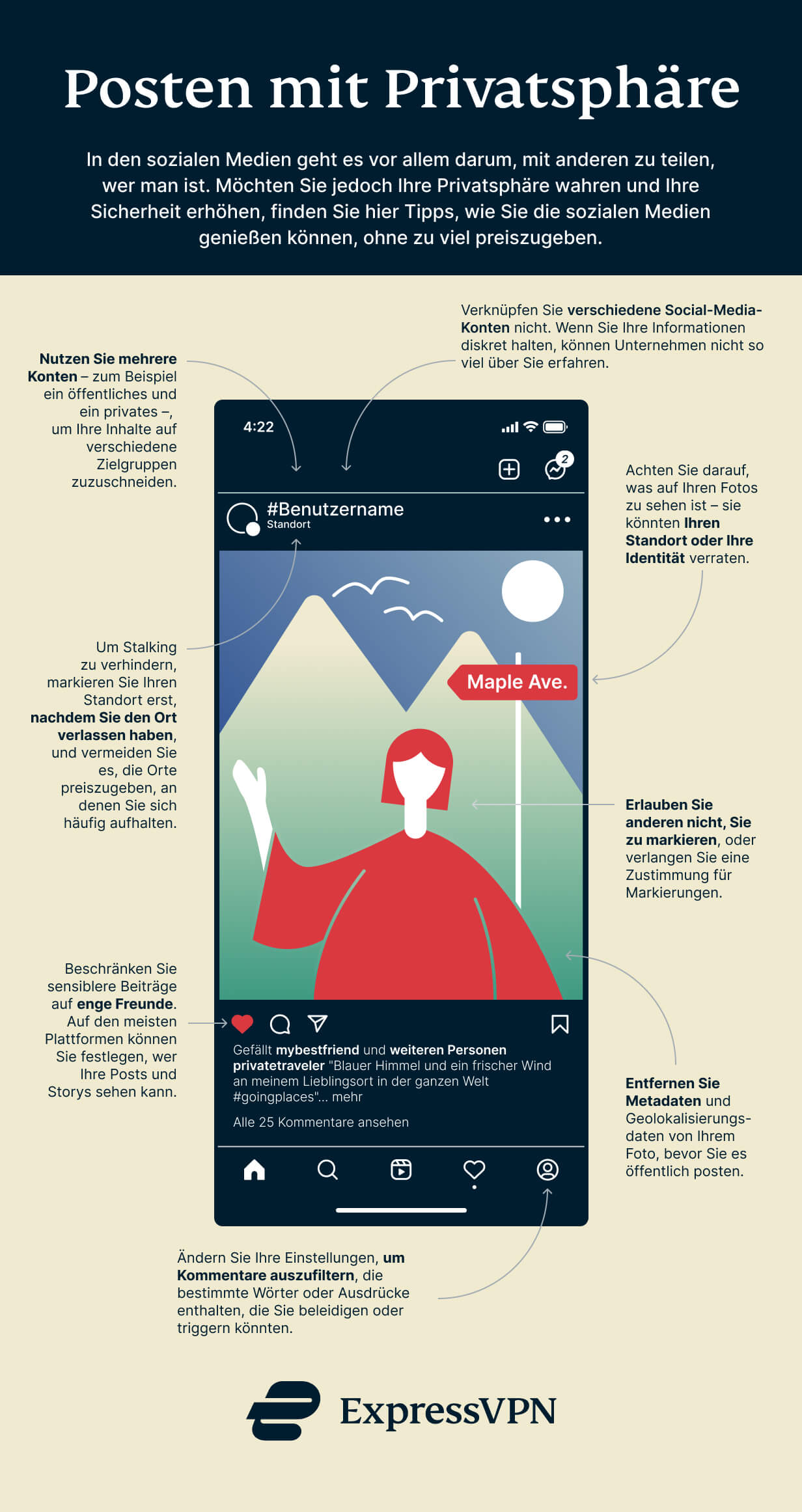 In den sozialen Medien dreht sich alles darum, mit anderen in Kontakt zu bleiben, indem man sein Leben und seine Gedanken mit ihnen teilt – und das kann sehr befreiend sein. Gleichzeitig gibt es aber auch zahlreiche Gründe, Ihre Beiträge in den sozialen Medien privat zu halten. Ein VPN herunterzuladen ist ein Schritt in Richtung größere Privatsphäre.