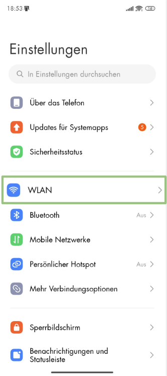- Öffnen Sie die Einstellungen und finden die WLAN-Option.