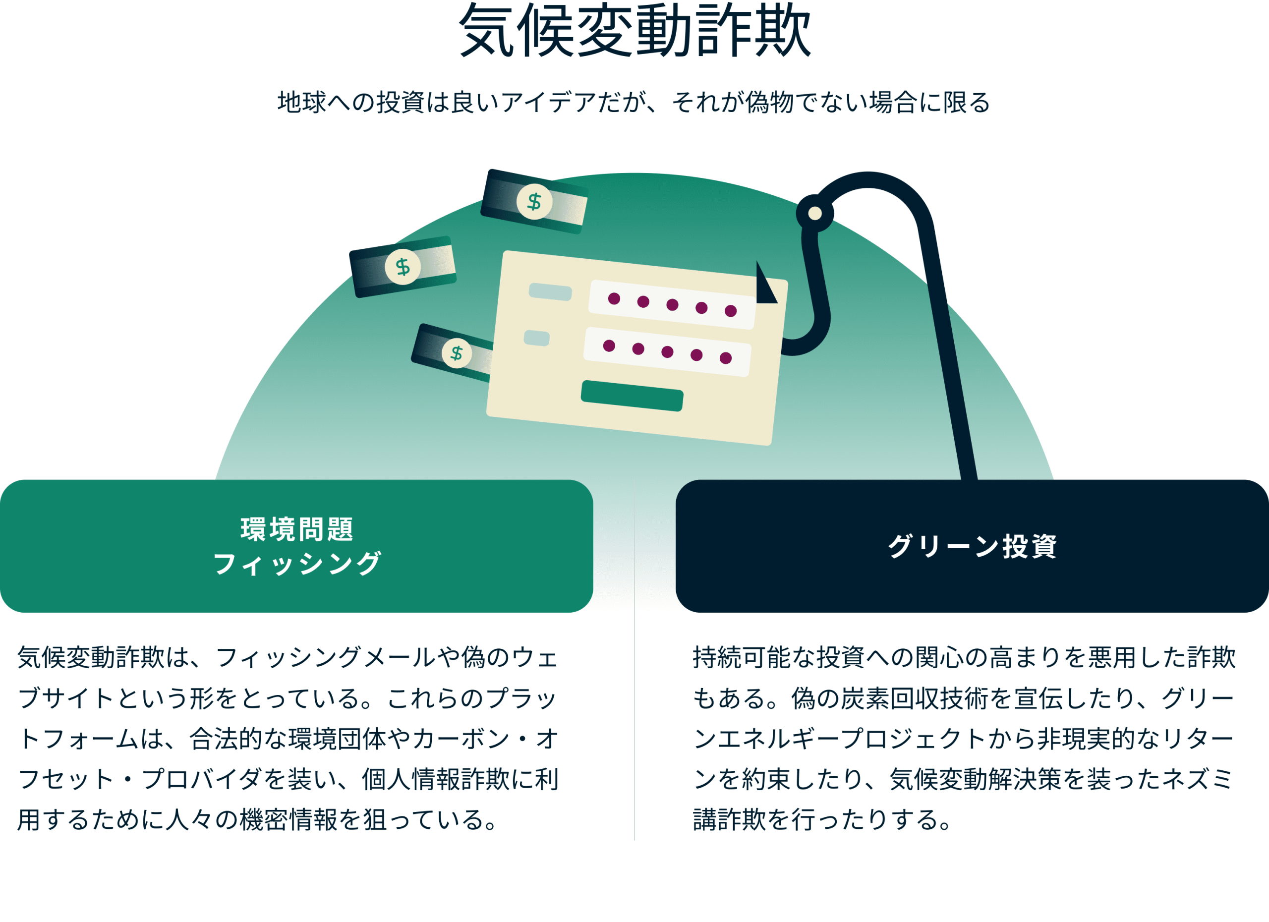 世界的な緊急課題である気候変動は、残念ながら詐欺師にとっても格好の餌食のようです。詐欺師たちは、人々の不安や解決策の一部になりたいという思いを利用して、環境に優しい取り組みを装って複雑な詐欺の網を張り巡らせます。
