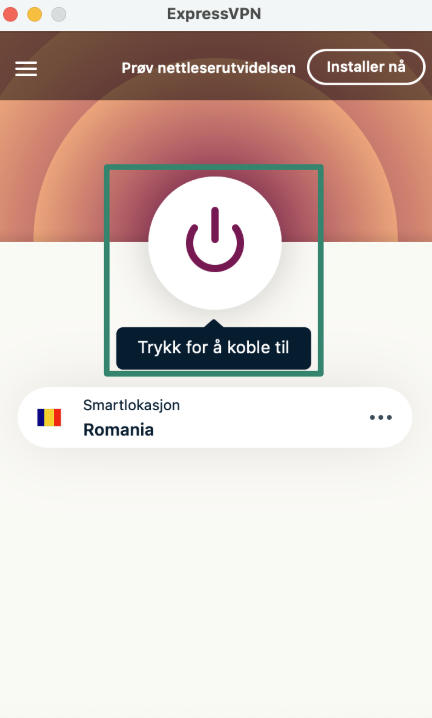 - Klikk på «Hurtigtilkobling» for å koble til og skjule IP-adressen din.