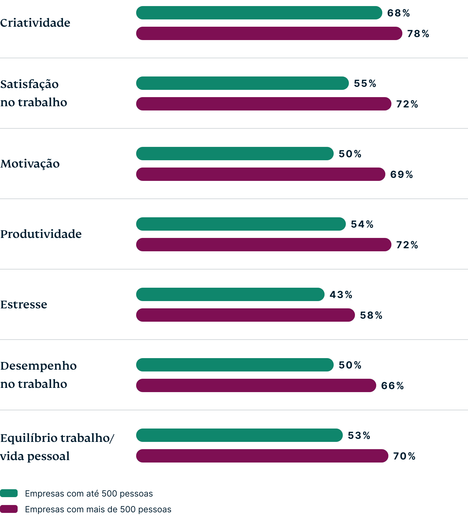 % dos funcionários pesquisados que escolheram cada resposta como motivo